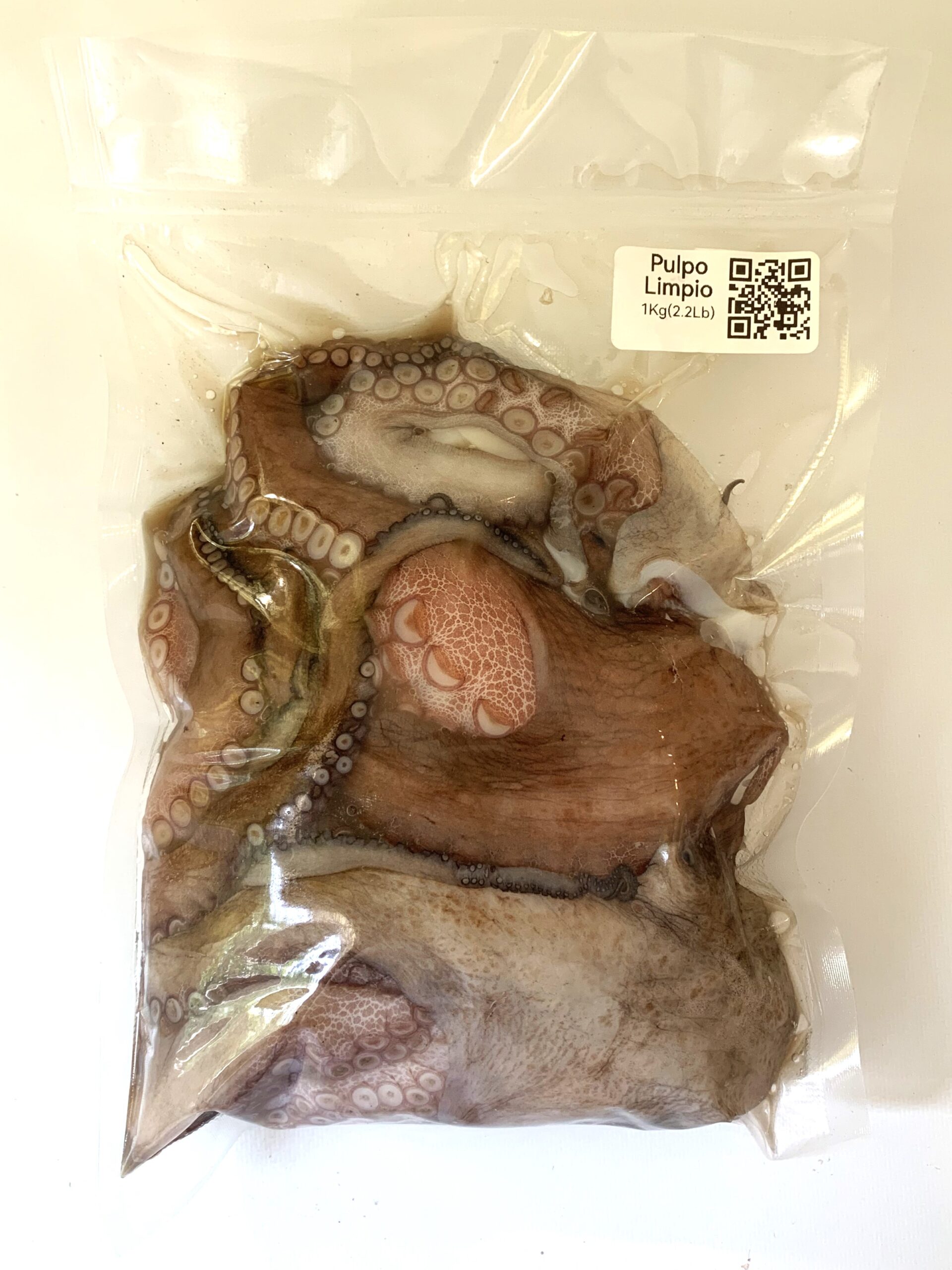 Paquete de 1 Kg de pulpo limpio envasado al vacío en bolsas de alta calidad
